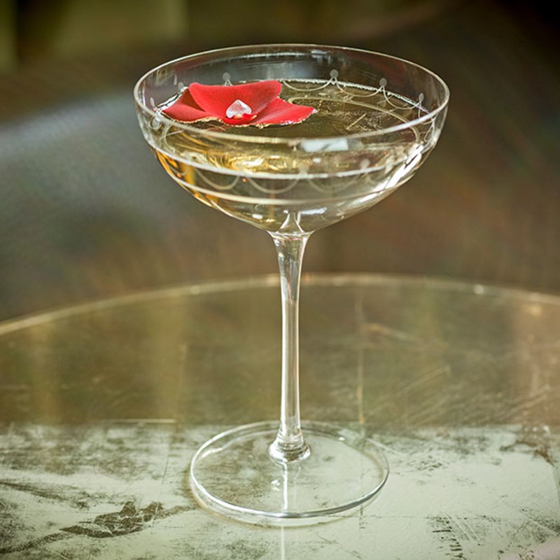 The Fleurissimo fragrance is from perfumer Creed’s Millésime collection, a French term that denotes a product of extra fine quality. To reflect this dedication, we use only the finest ingredients from Remy Martin cognac to a crystal coupe. For the finishing touch, a rose petal garnish to evoke Princess Grace’s love of the flower. And it also looks beautiful alongside wedding bouquets and table settings.