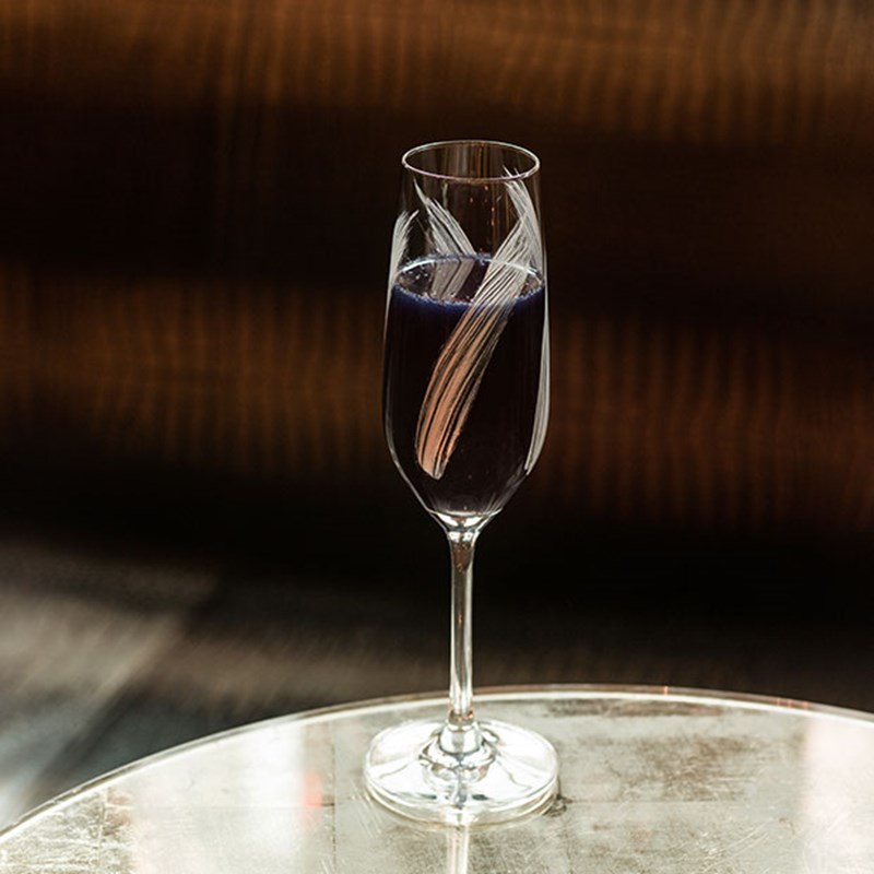 Soak the sugar cube with Peychaud’s Bitters and gently drop into the champagne coupe filled with the violet liqueur and Remy Martin VSOP cognac. Top up with champagne and garnish with a rose petal.