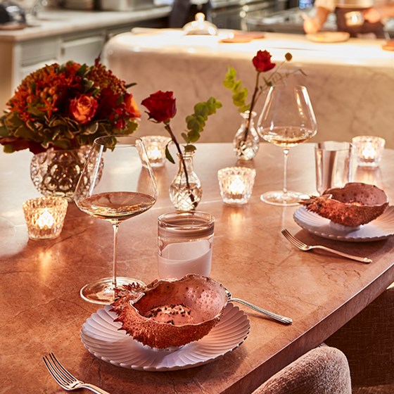 Embark on a gastronomic journey with our elegant showcase for the world’s most prestigious wines, alongside a bespoke menu created by Hélène Darroze.