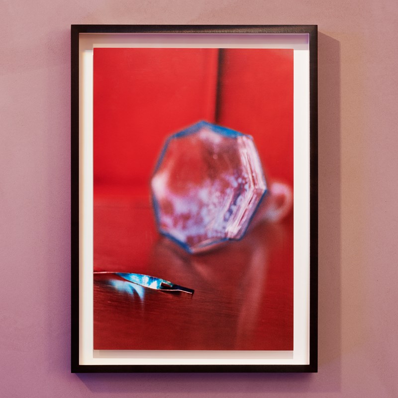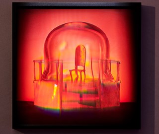 A striking work in watercolour, gouache and pencil, Louise Bourgeois’ ‘I Am Rouge’ has never before been exhibited in the world. Here, it forms the focal point of the room, nestled between Brian Clarke's glass panels. This statement piece typifies Bourgeois’ recurring use of red. It’s joined by her scarlet-saturated hologram, a dream-like image from the French-American artist’s 1998 untitled series of eight holographic pieces.