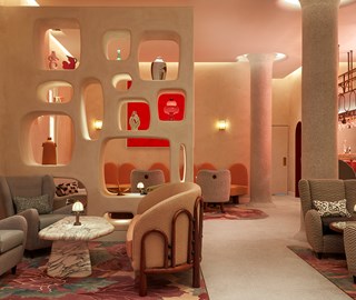 Looking out from the organic curves of the ombre scarlet snug, the Red Room has the feel of a collector’s living room. Soft creams, blush pinks and pearl blues form a soothing palette, accented by the dramatic red works. Perfectly appointed nooks feature small ceramics and objects d’art that shimmer under the glow of antique pendants and jewel-like lamps.