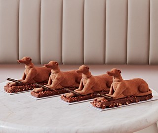Our much loved Connaught hound which graces the hotel emblem, has been reimagined as a chocolate hazelnut cake. This miniature work of art will be a patisserie signature, available to take away or feast on at the Patisserie.